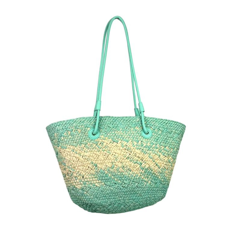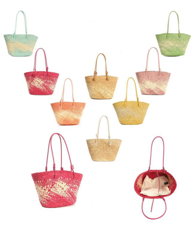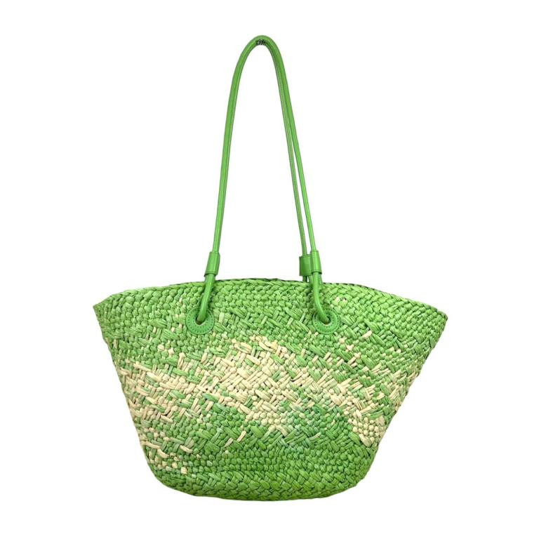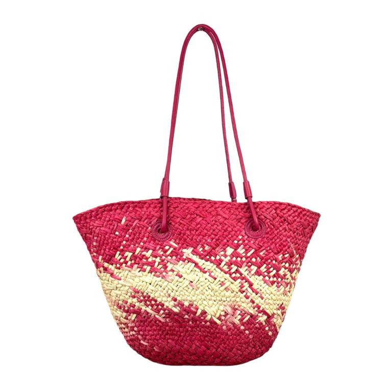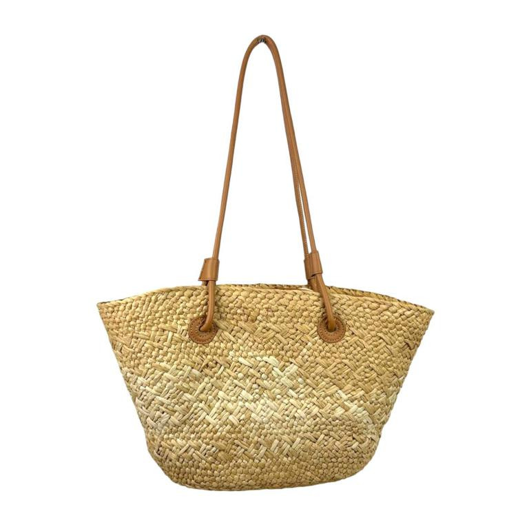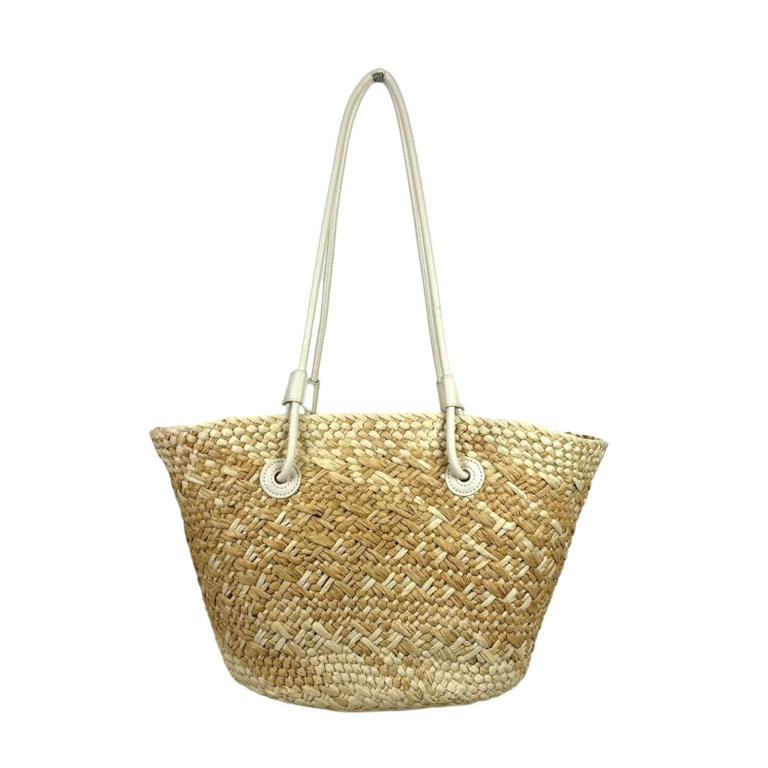 Amplia Cesta de Papel con 2 Asas Largas y Saquito Interior con Cierre de Cuerdas para Mujer. Ideal para playa o piscina.