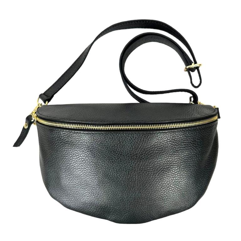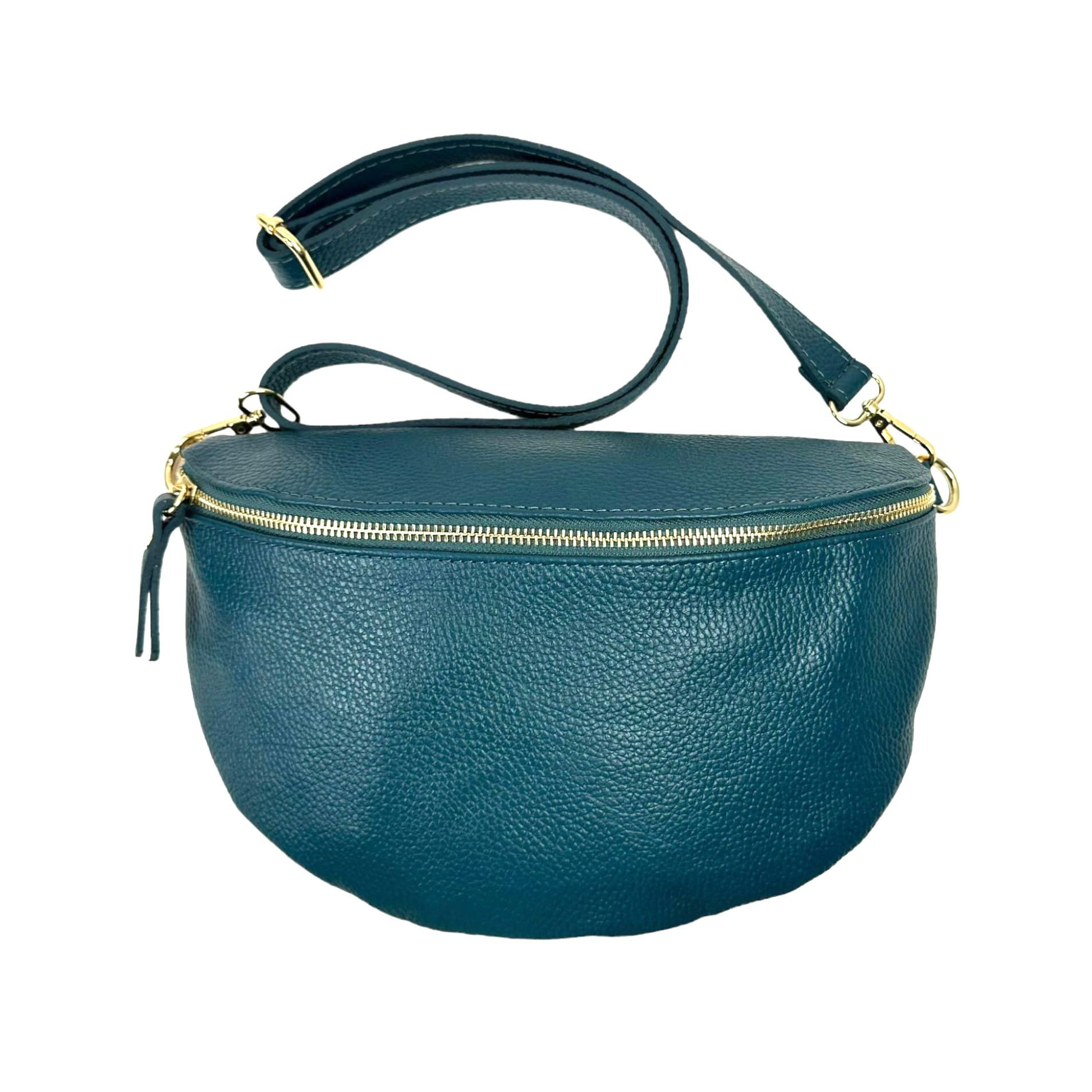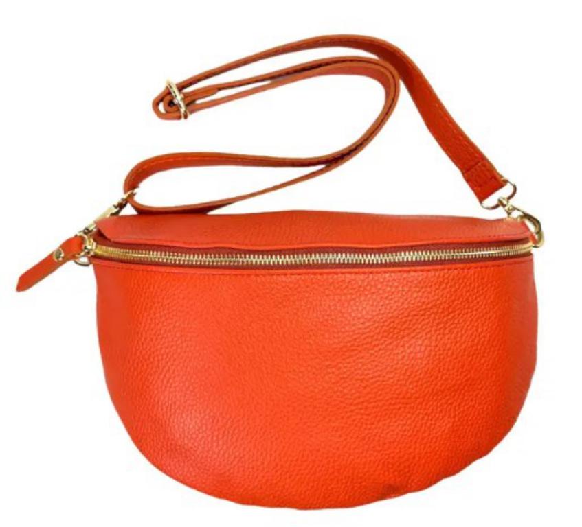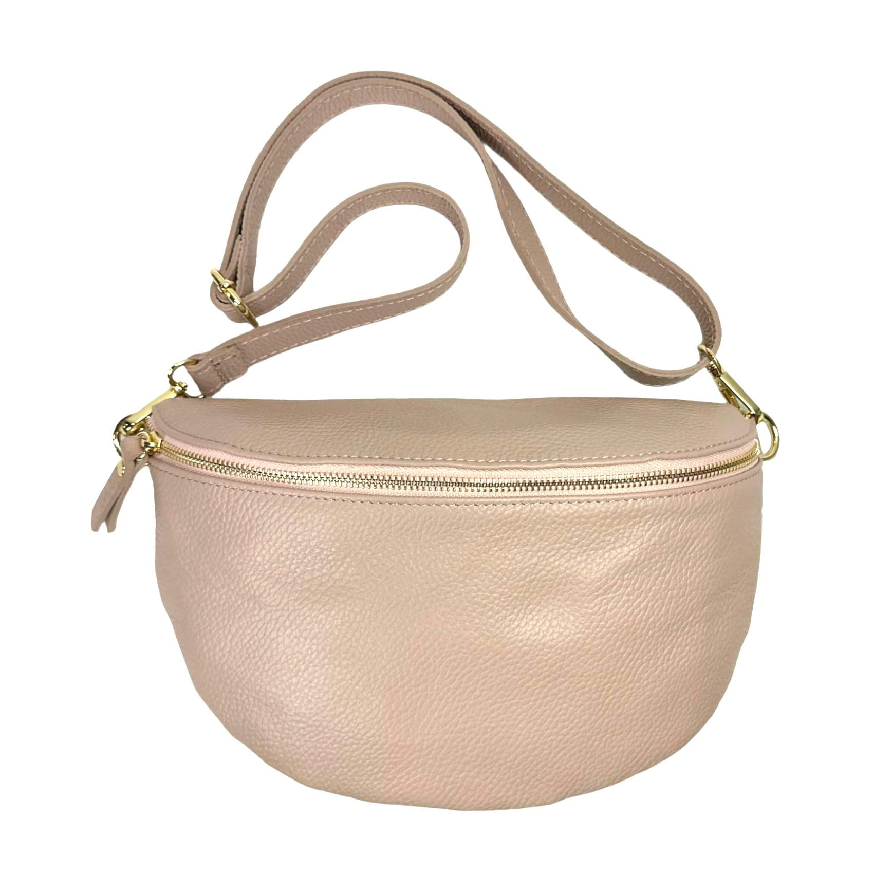 Amplia Riñonera de Piel para Mujer con Compartimento Interior y Cierre de Cremallera. Fabricado en Italia.