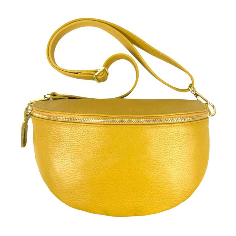 Amplia Riñonera de Piel Italiana para Mujer con Compartimento Interior y Cierre de Cremallera.