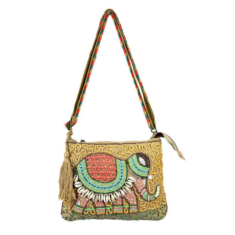 Bolso Bandolera Artesanal en Yute con Bordados, Diseño de Elefante y Estilo Único para Mujer. Fabricado en Bangladesh.