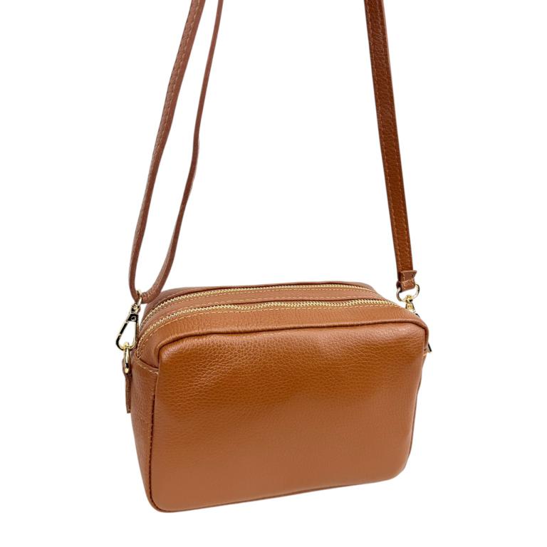 Bolso Bandolera en Piel Italiana con 2 Bolsillos con Cierre de Cremallera para Mujer