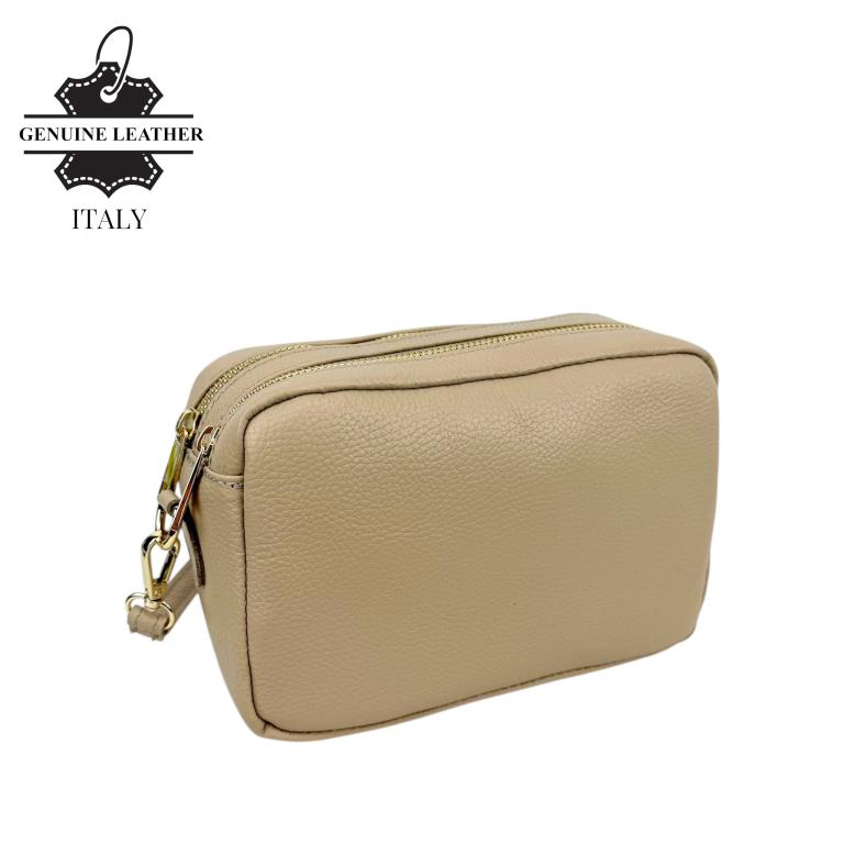 Bolso Bandolera en Piel Italiana con 2 Bolsillos con Cierre de Cremallera para Mujer.
