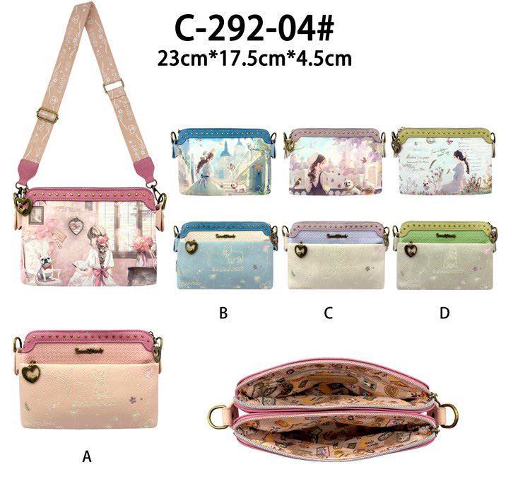 Bolso Bandolera Sintético con Diseño de Muñeca, Bolsillo Trasero con Cierre de Cremallera y 2 Compartimentos Principales para Mujer. Colección Sweet Candy.