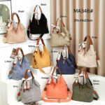 Bolso de Hombro en Lino Lavado con Pañuelo Decorativo, Cierre de Cremallera y 2 Asas Marrones para Mujer.