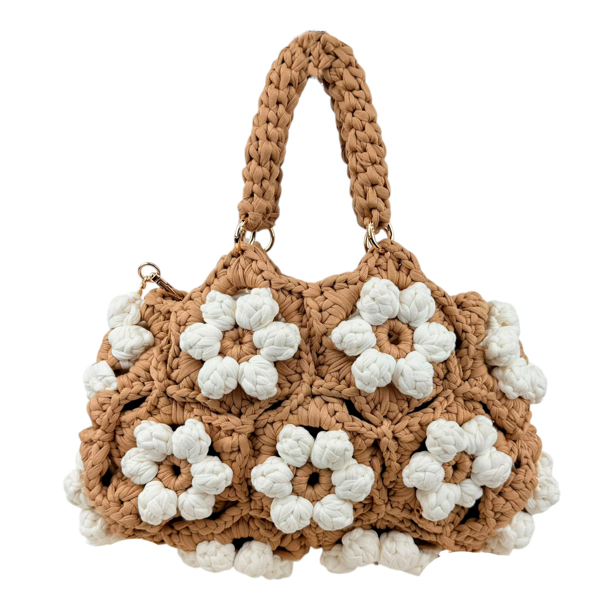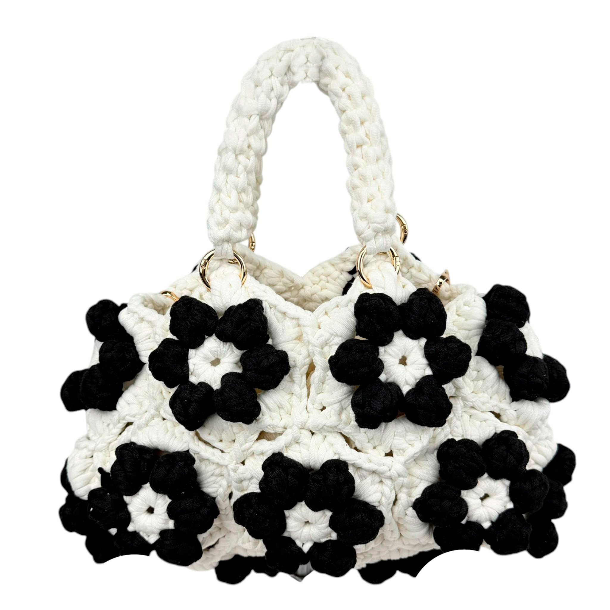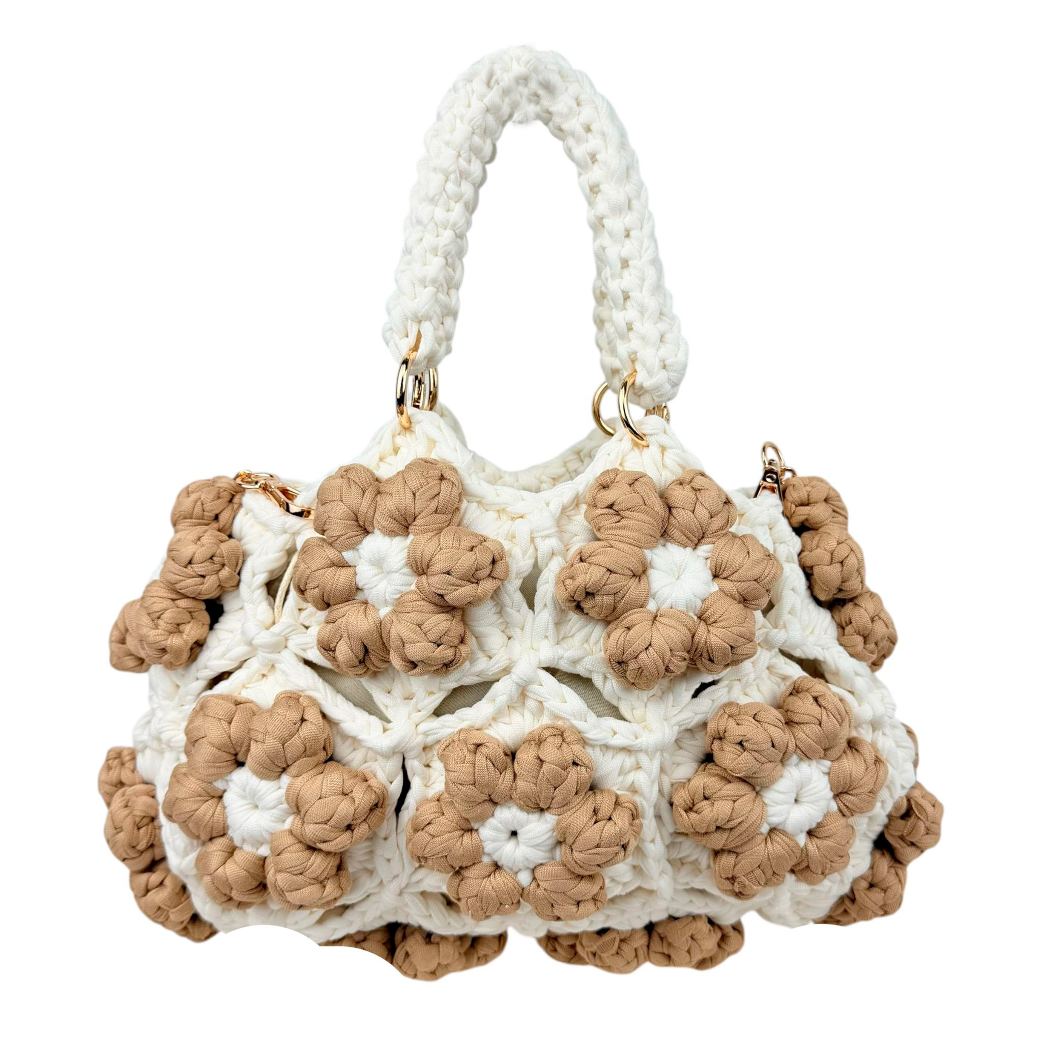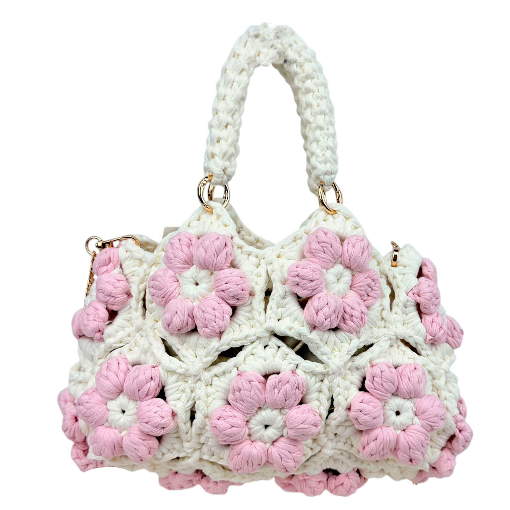 Bolso de Mano en Algodón Tipo Ganchillo con Diseño de Flores y Saquito Interno para Mujer