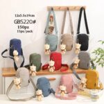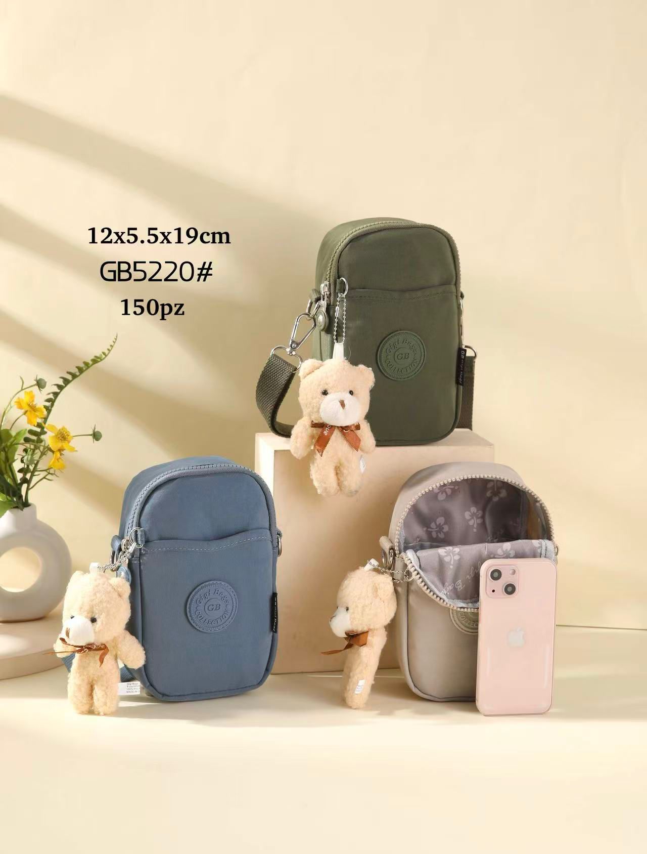 Bolso Portamovil en Nylon con Osito Decorativo y Compartimento Frontal para Mujer.