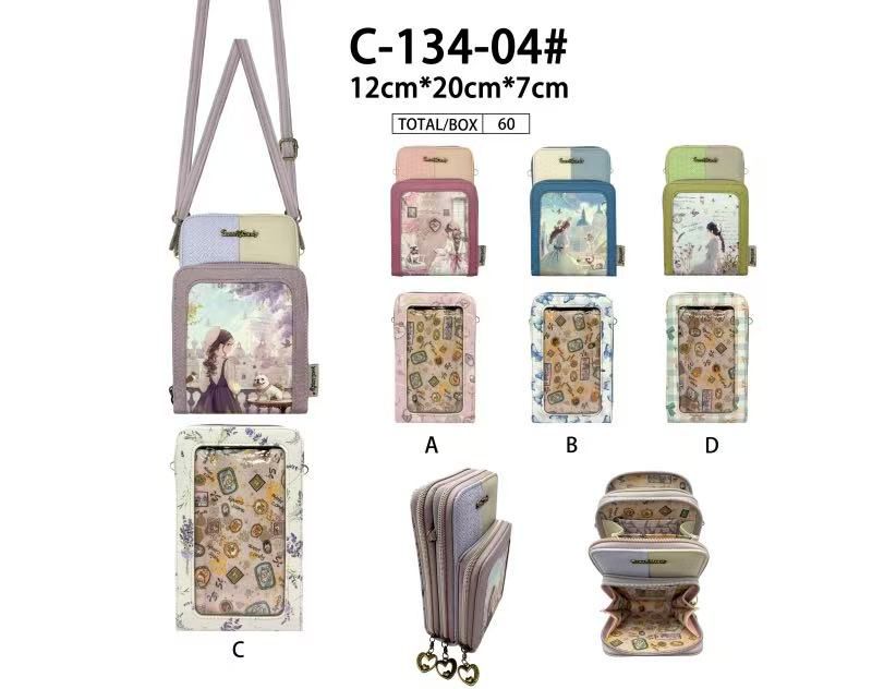 Bolso Portamovil Sintético de Mujer con Muñeca Sweet Candy y Bolsillo Trasero Transparente