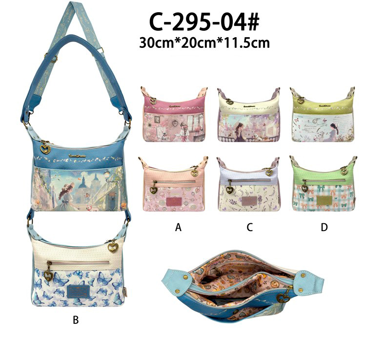 Bolso Sintético de Hombro para Mujer con Diseño de Muñeca, Asa Larga y 2 Compartimentos con Cierre de Cremallera. Colección Sweet Candy.
