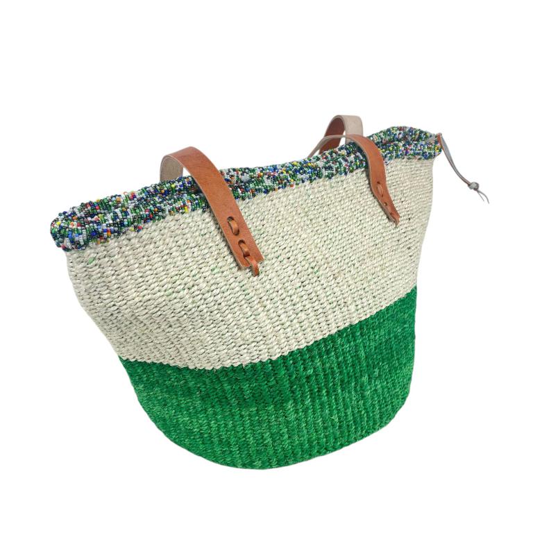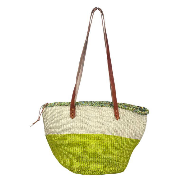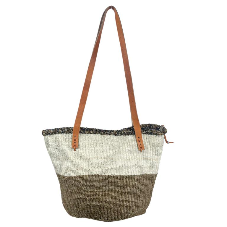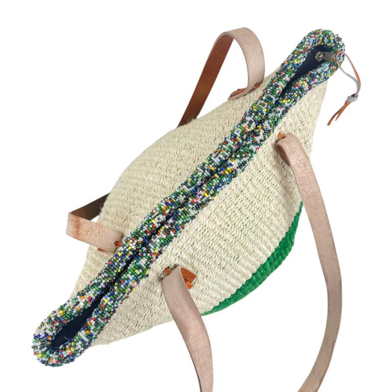 Capazo Artesanal Africano de Lino y Yerba Autóctona con 2 Asas Largas, Cierre de Cremallera y Diseño Exclusivo. Fabricado en Kenia.