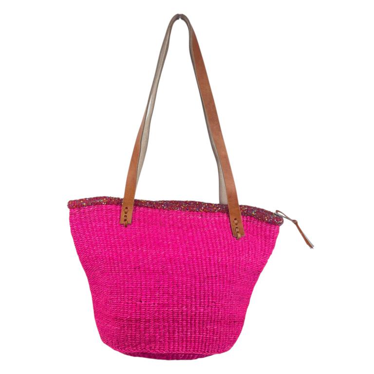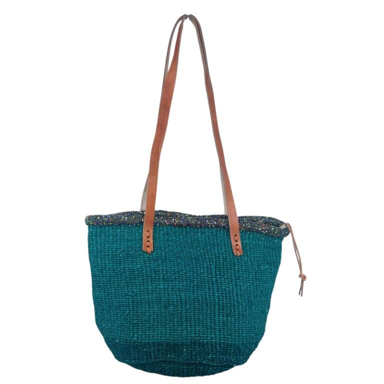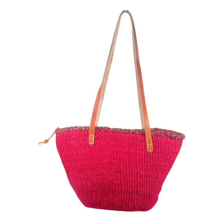 Capazo Artesanal Africano de Lino y Yerba Autóctona con Diseño Exclusivo y Colores Lisos para Mujer. Fabricado en Kenia.