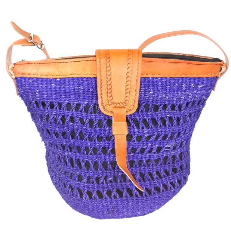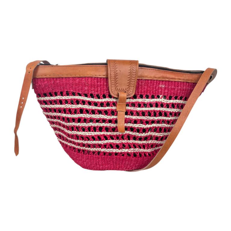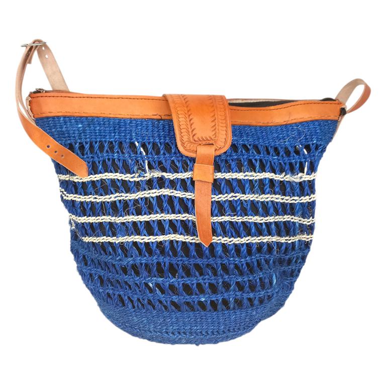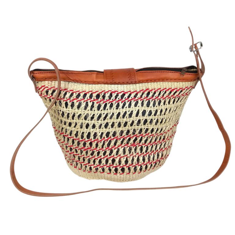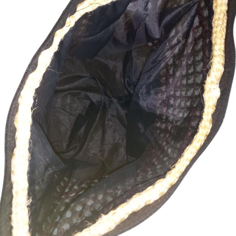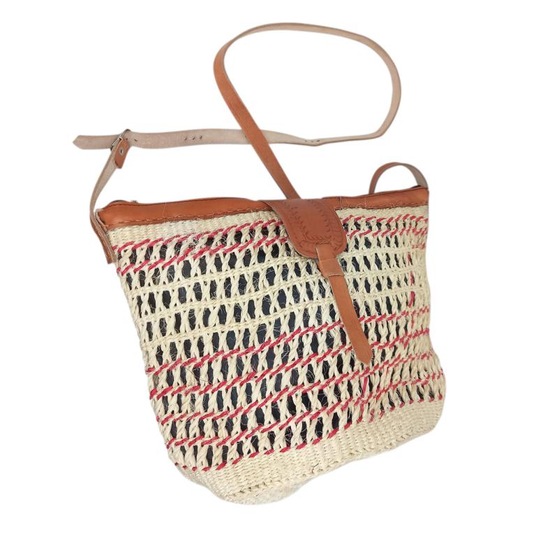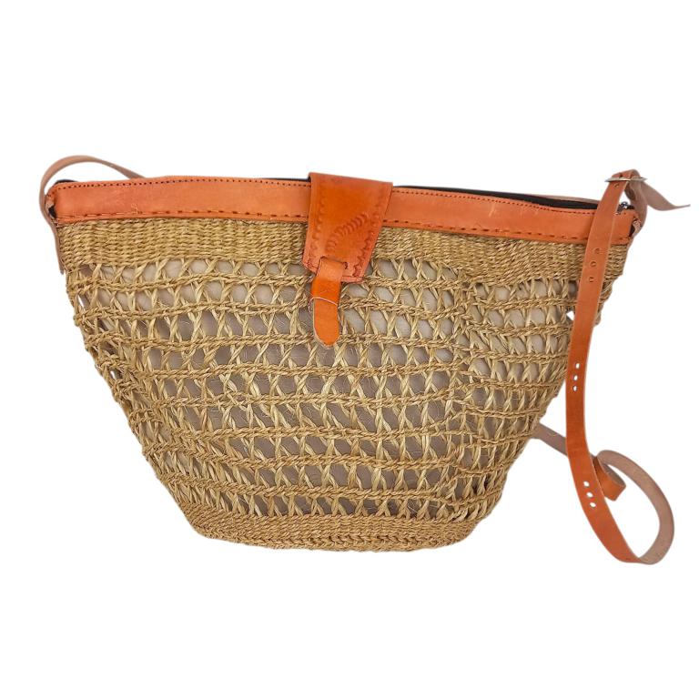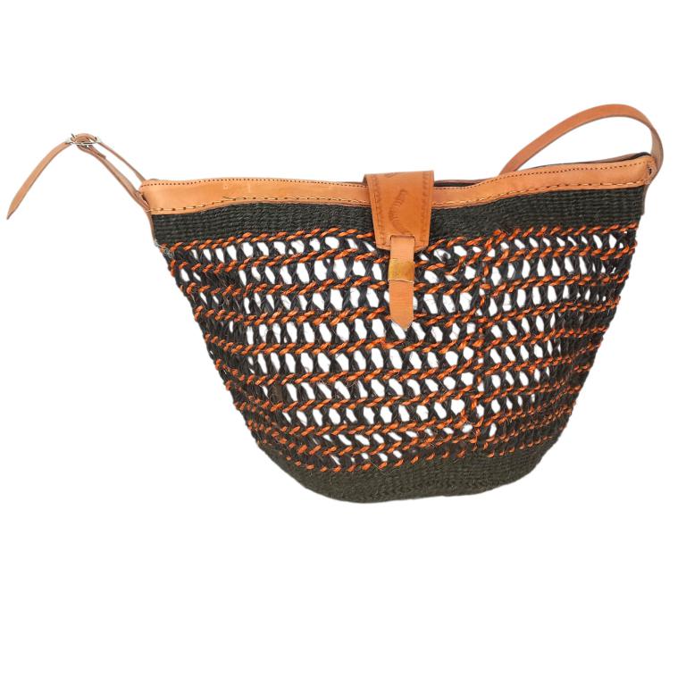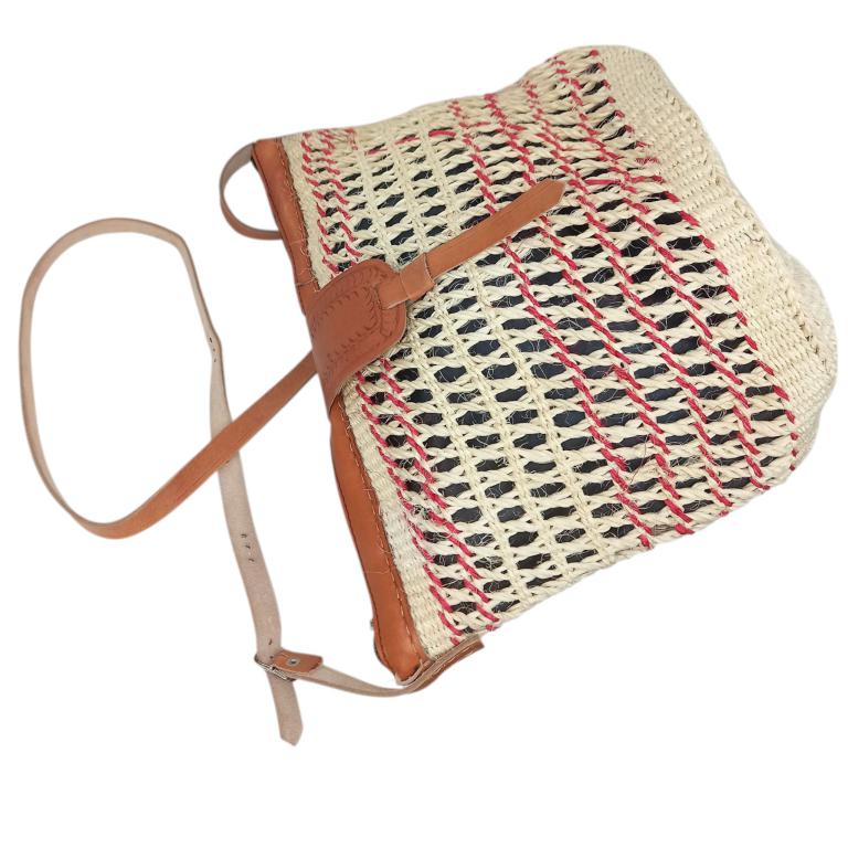 Capazo Artesanal Africano de Lino y Yerba Autóctona con Solapa, Cierre de Cremallera, Asa Larga y Diseño Exclusivo. Fabricado en Kenia.