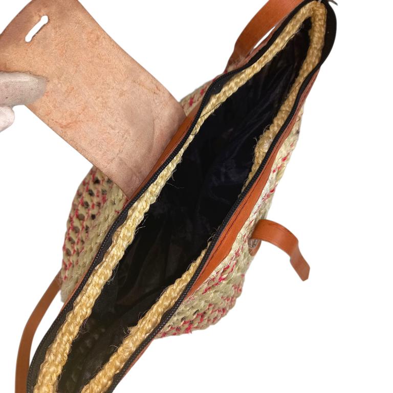 Capazo Artesanal Africano de Lino y Yerba Autóctona con Solapa, Cierre de Cremallera Asa Larga y Diseño Exclusivo.