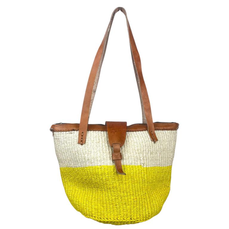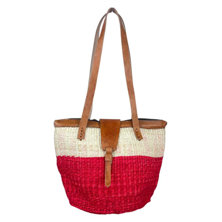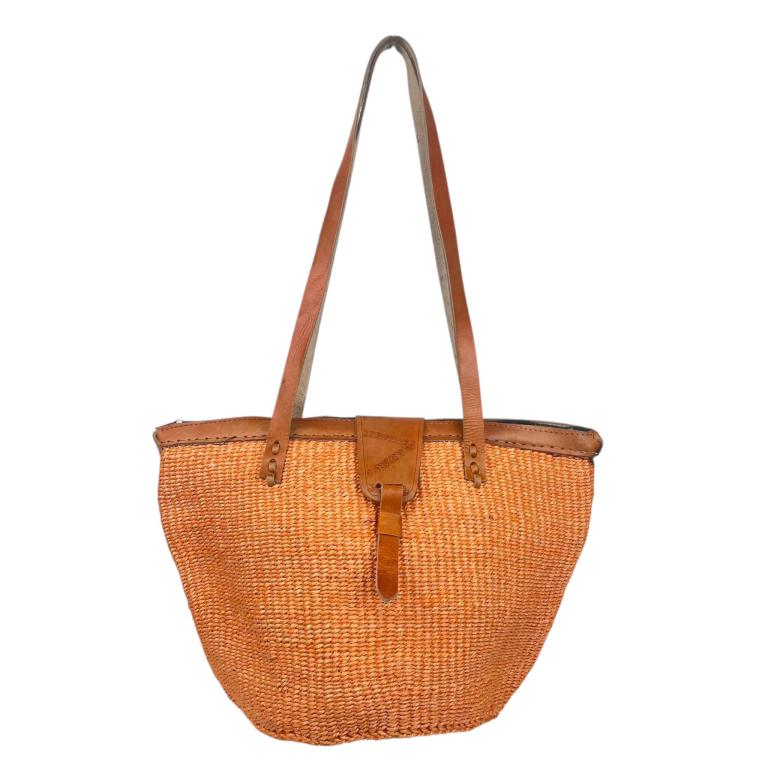 Capazo Artesanal Africano de Lino y Yerba Autóctona con Solapa, Asa Larga y Diseño Exclusivo