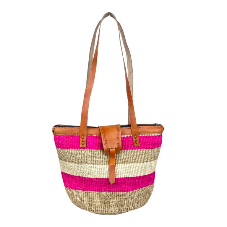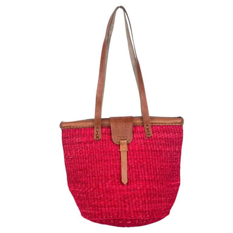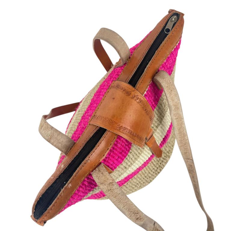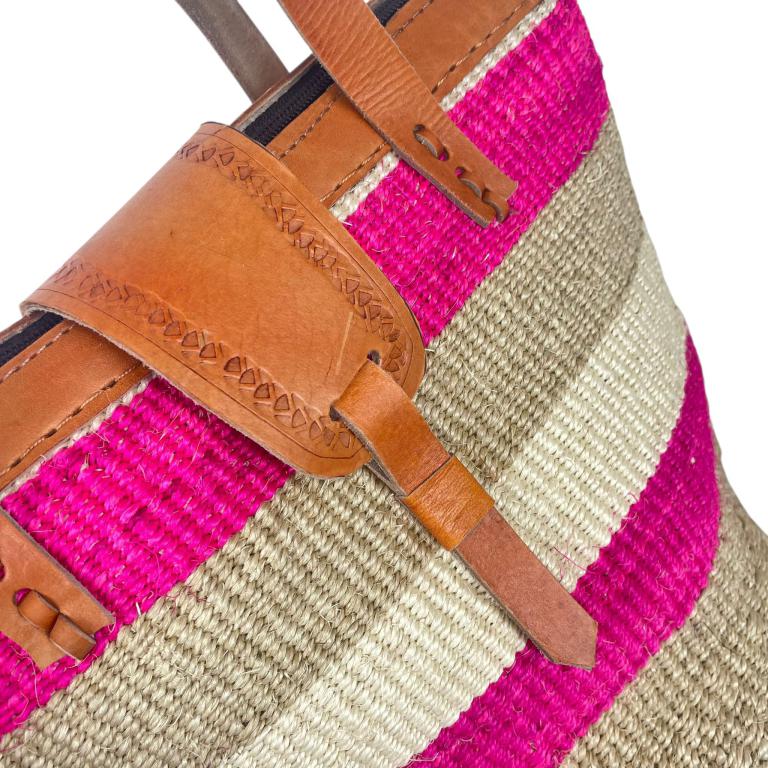 Capazo Artesanal Africano de Lino y Yerba Autóctona con Solapa, Cierre de Cremallera, Asa Larga y Diseño Exclusivo. Fabricado en Kenia.