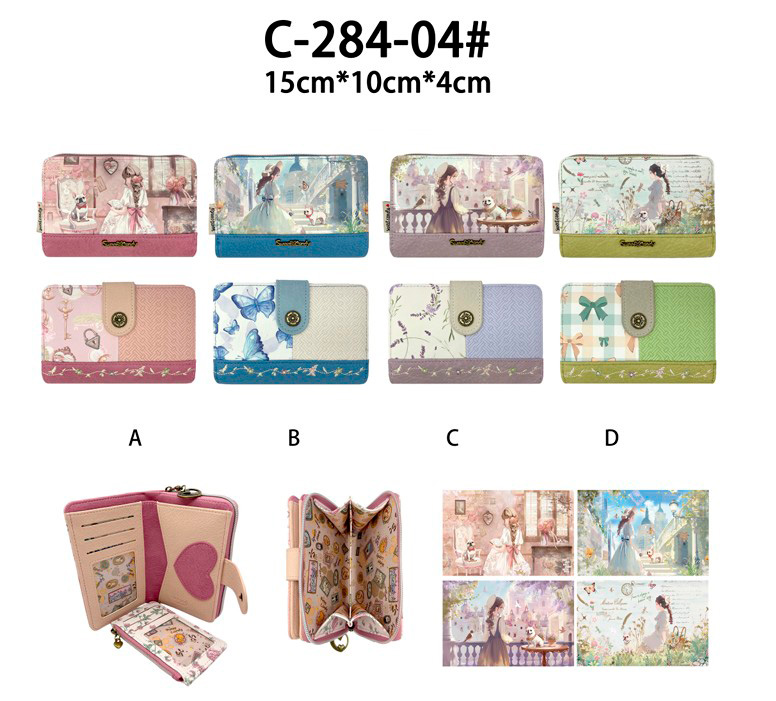 Cartera Sintética de Mujer con Diseño de Muñeca, Caja, Mini Solapa de Botón y Tarjetero Extraíble. Colección Sweet Candy.