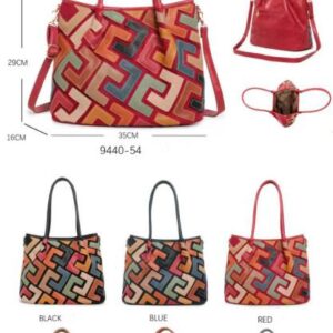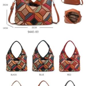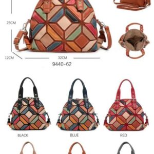 Bolso de Mano Sintético Multicolor Patchwork con Asas Cortas Ajustables y Tira Bandolera para Mujer