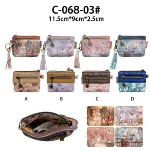 Monedero-Tarjetero de Mujer con Diseño Muñeca Sweet Candy, Caja, Mini Solapa y Cremallera