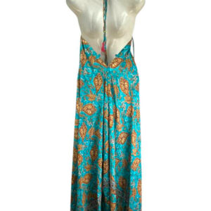 Ligero y Cómodo Vestido Largo Artesanal de Mujer en Seda India con Espalda Descubierta y Escote