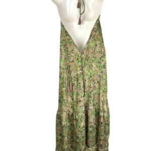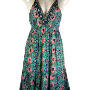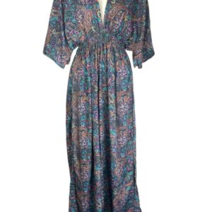 Vestido Multicolor Largo Artesanal para Mujer en Seda India con Cuello en V y Espalda Descubierta