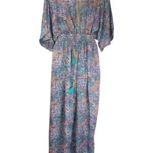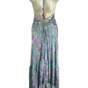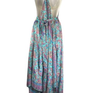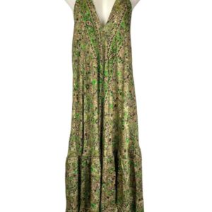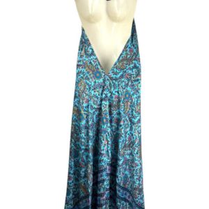 Vestido Largo Artesanal con Bonito Diseño en Seda India de Mujer con Espalda Descubierta y Talla Única