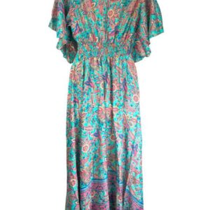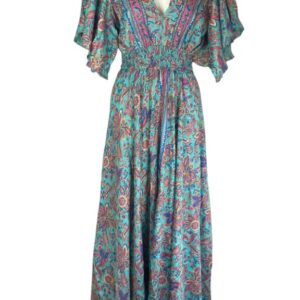 Vestido Largo Artesanal en Seda India con Escote con Volantes y Talla Única para Mujer