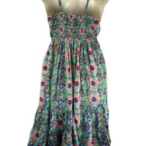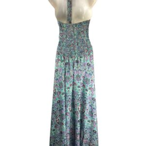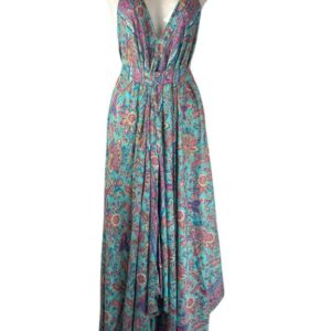 Vestido Largo Artesanal en Seda India con Diseño Flores y Espalda Descubierta para Mujer