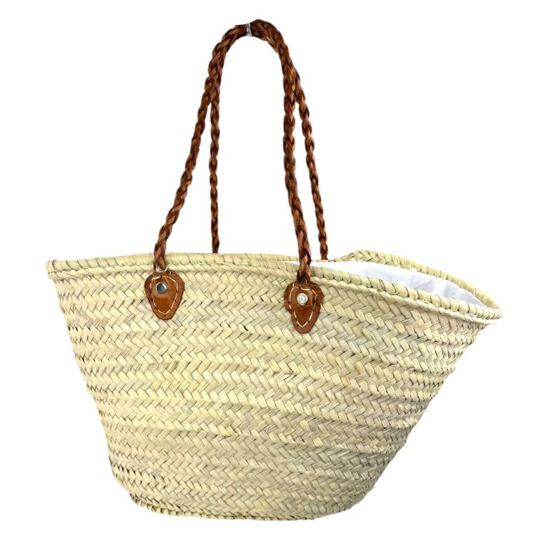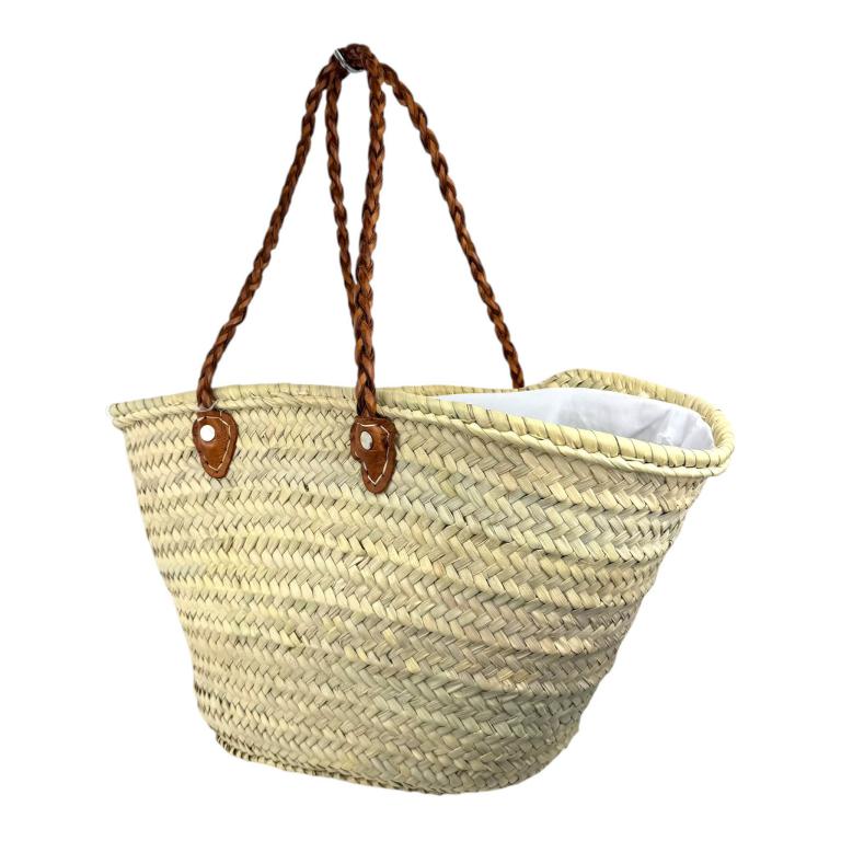 Cesta Grande de Rafia Artesanal con 2 Asas Trenzadas y Cierre de Cuerdas para Mujer. Fabricado en Marruecos.