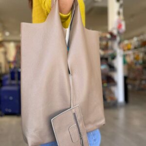 Bolso Shopper Universitario De Piel Italiana con Monedero Extra para Mujer