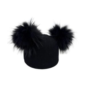 Gorro de Gran Calidad para Mujer en Cashmere con Pompones de Pelo Natural