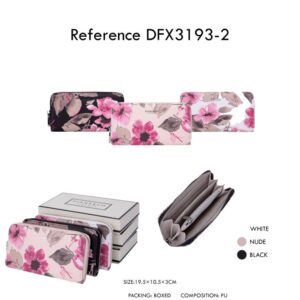 Cartera de Piel Sintética para Mujer con Caja, Diseño Flores, Cierre de Cremallera y Gran Calidad