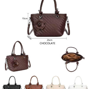 Bolso de Mano Sintético con Diseño Trenzado y Flor Frontal Decorativa para Mujer