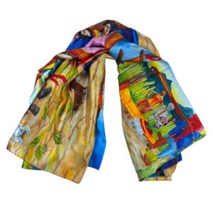 Amplia Bufanda de Mujer en Seda 100% con Gran Calidad y Diseño de Flores