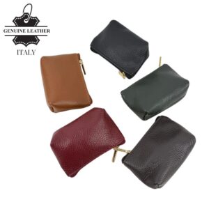 Monedero Compacto en Piel Italiana para Mujer con Cierre de Cremallera y Colores Lisos