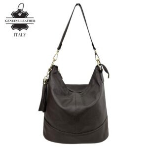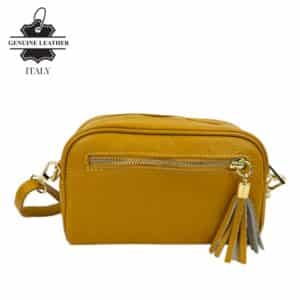 Bolso Bandolera de Mujer en Piel Italiana con Bolsillo Frontal con Flecos y Cierre de Cremallera