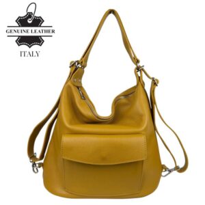 Bolso-Mochila de Piel Italiana para Mujer con Gran Capacidad y Bolsillo Frontal