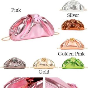 Bolso Sintético con Efecto Metalizado, Mini Solapa con Flor y Cierre de Imán para Mujer