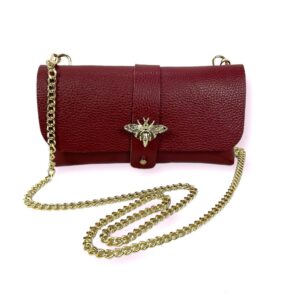 Bolso Piel De Grano Con Asa De Cadena Y Broche De Abeja Para Mujer