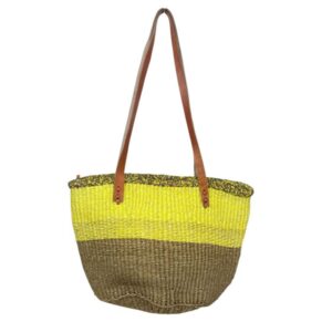 Capazo Artesanal Africano de Lino y Yerba Autóctona con Diseño Exclusivo y Colores Lisos para Mujer