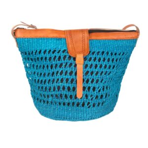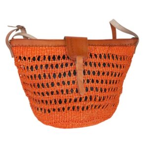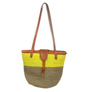 Capazo Artesanal Africano de Lino y Yerba Autóctona con Solapa, Asa Larga y Diseño Exclusivo