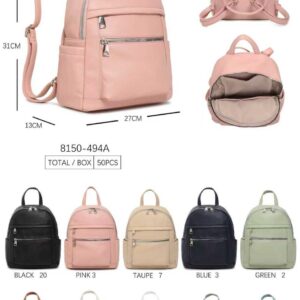 Mochila Sintética Antirrobo para Mujer con 2 Bolsillos Frontales y Compartimentos Laterales
