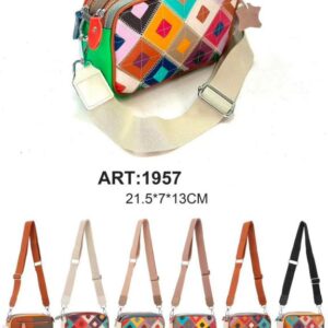Bolso Bandolera Multicolor Trenzado de Piel con Bolsillo Trasero y 2 Compartimentos para Mujer