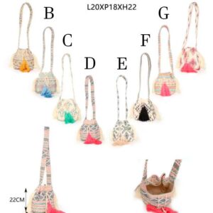 Bolso de Hombro Estilo Bohemio en Algodón con Cierre de Cuerdas y Gran Calidad para Mujer