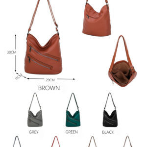 Amplio Bolso Vintage Mujer de Piel Lavado con Bolsillos Frontales