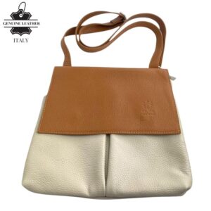 Bolso de Hombro en Piel Italiana con 3 Bolsillos Frontales bajo la Solapa de 2 Botones para Mujer