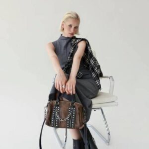 Bolso Sintético de Mujer Estilo Punk con Cadenas y 2 Compartimentos