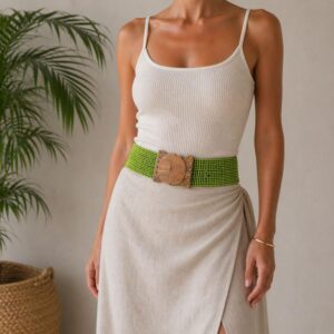 Cinturón Artesanal Elástico de Coco con Diseño Exclusivo y Madera de Mango para Mujer