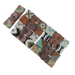 Cinturón Artesanal Elástico de Cristal con Diseño Bolitas Multicolor y Madera de Mango Mujer