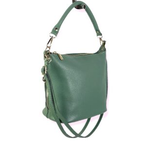 Bolso de Hombro de Mujer Piel Italiana con Cremalleras Laterales Decorativas