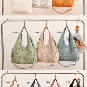 Bolso de Hombro Grande Sintético para Mujer con Agujeros y Bolso Bandolera Extra