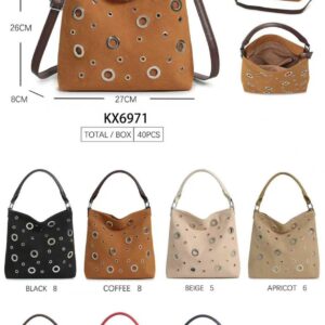Bolso de Mano Sintético Hobo con Agujeros Frontales, Bolsillo Trasero y Tira Bandolera de Mujer